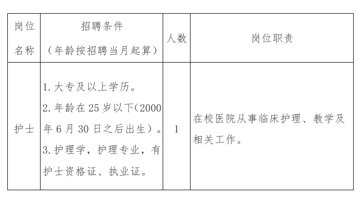 因工作需要,开云电竞信誉好校医院现面向社会公开招聘非事业编护士1名。为保证招聘工作顺利进行,现将招聘有关事项公告如下: